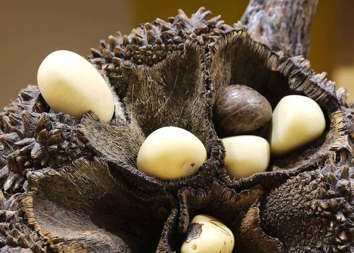 Tagua is the seed of the Phytelephas palm tree, found in the tropical of South America. It is known as vegetable ivory for its appearance, color, texture and hardness. Tagua nuts are dried, shaped, carved and dyed. They are renewable and sustainable resource as trees can produce nuts for many years without being harmed.